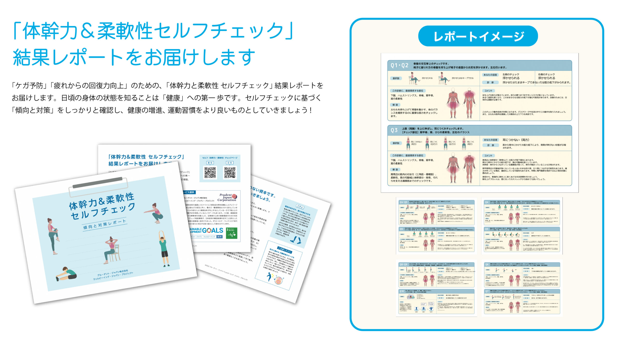 そこで、社員のセルフチェックによって、傷害の予防などにも関係するこの2つの力(自分の体)への関心を喚起させます。